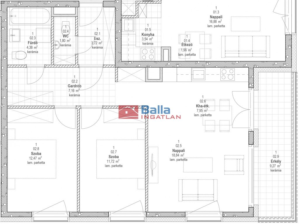 30 lakás és egy üzlet kerül kialakításra, melyekhez 32 db parkolóhely kapcsolódik.