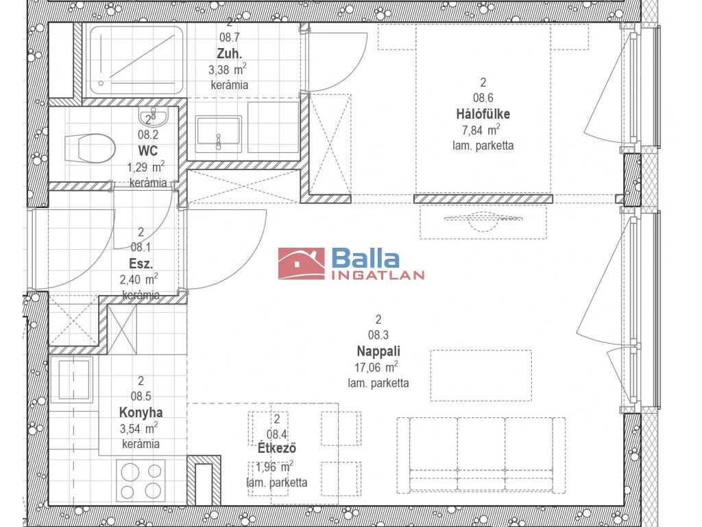 30 lakás és egy üzlet kerül kialakításra, melyekhez 32 db parkolóhely kapcsolódik.