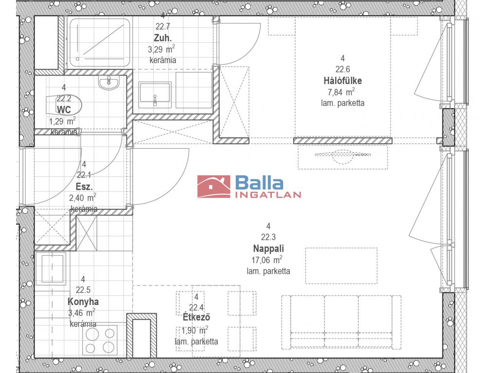 422 lakás - 37,24 nm erkély nélkül.