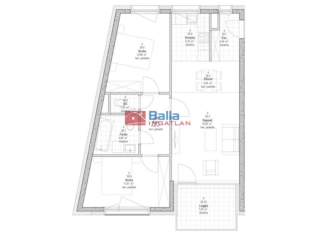 426 lakás - 67,02 nm + 7,29 nm erkély.