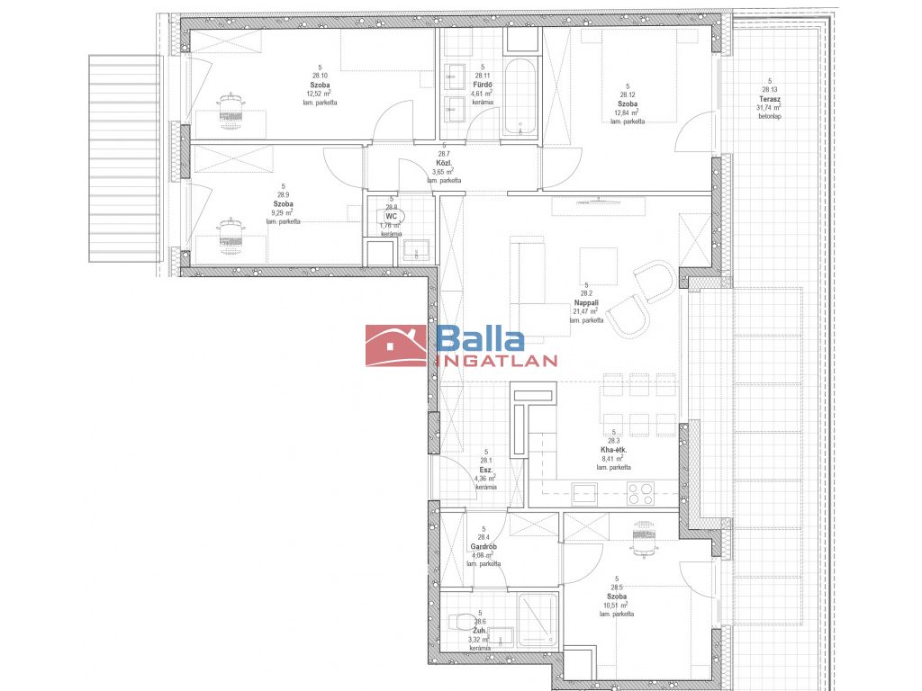 528 lakás - 96,82 nm + 31,74 nm terasz.