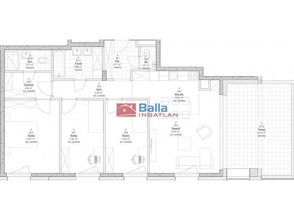 529 lakás - 93,36 nm + 23,1 nm terasz.