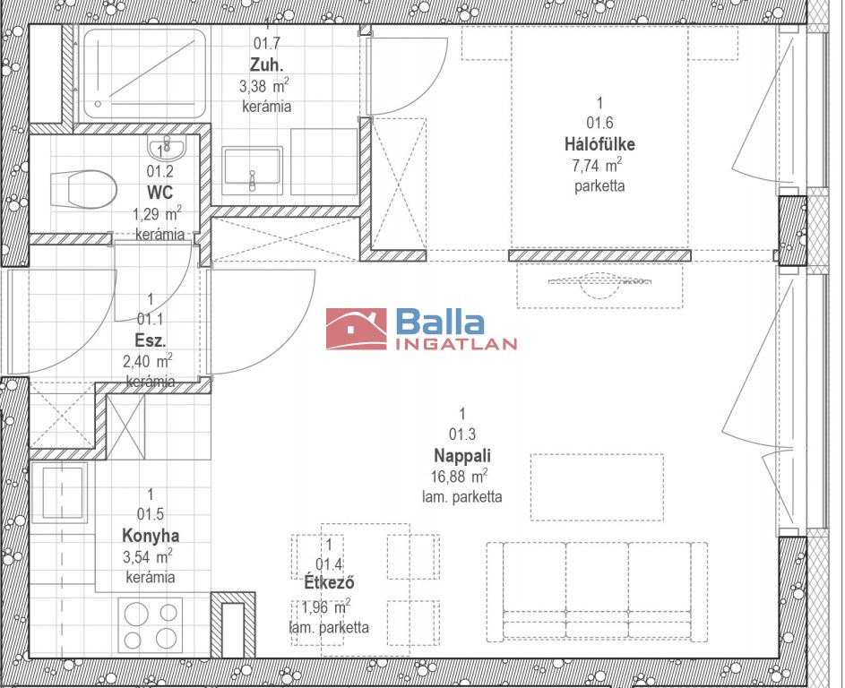 30 lakás és egy üzlet kerül kialakításra, melyekhez 32 db parkolóhely kapcsolódik.
