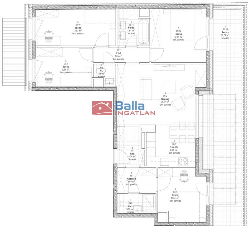 30 lakás és egy üzlet kerül kialakításra, melyekhez 32 db parkolóhely kapcsolódik.