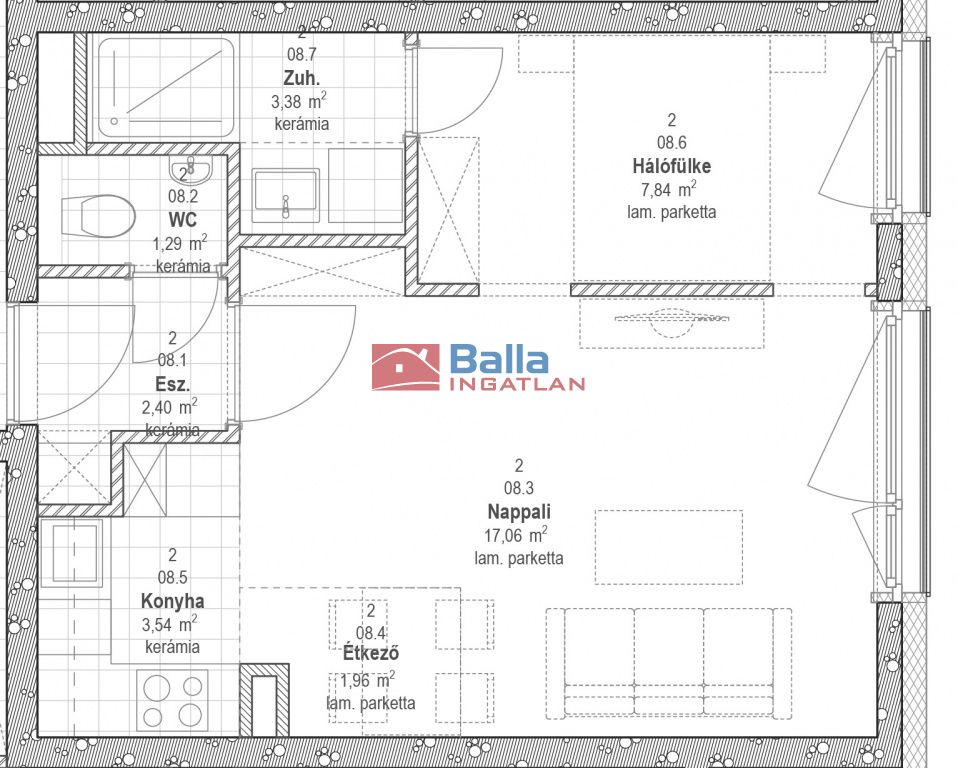 30 lakás és egy üzlet kerül kialakításra, melyekhez 32 db parkolóhely kapcsolódik.